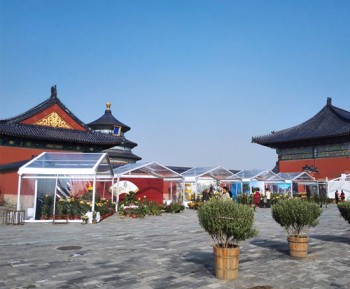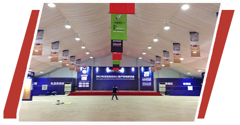 華燁提供包括尖頂、人字頂各種跨度的篷房,同時提供地板、空調等各種配套服務,您還可以選責不同顏色的篷布或者logo的印制