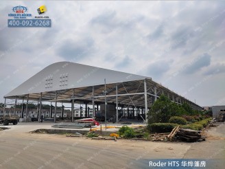 工業(yè)蓬房可搭建3-80米跨度,高度可定制,走貨柜車、叉車等可方便的從四面進出篷房,搭建無地基處理中間無立柱,內(nèi)部可自由運輸貨物合理使用空間,重要的一點是空間相對于傳統(tǒng)建筑,及時是大面積的搭建在審批流程上是十分的簡易與便捷,根據(jù)當(dāng)?shù)氐牧鞒陶哌M行即可。